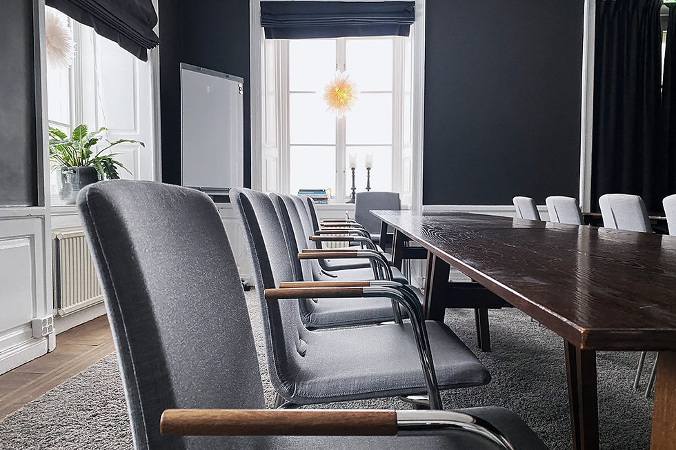 Lokalen ligger på entréplan, direkt till vänster efter receptionen, vilket gör den lättillgänglig och perfekt för medelstora möten, utbildningar och workshops. De generösa fönstren släpper in behagligt dagsljus, och rummets harmoniska miljö främjar både fokus och kreativitet. Lokalen har sköna stoppade stolar från svenska Gärsnäs och eleganta