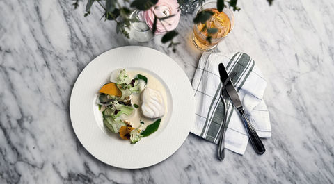 Happy Lunch på Hufvudsta Gård är mer än en lunch – det är en social matupplevelse. Vi börjar med vegetariska sharing-rätter som delas runt bordet, perfekt för att smaka på flera rätter och starta lunchen tillsammans.